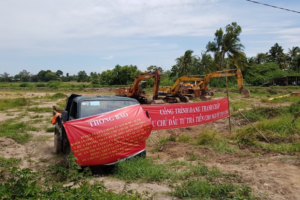 Bức xúc vì không được chủ đầu tư dự án cao tốc Trung Lương – Mỹ Thuận thanh toán, Nhà thầu thi công gói thầu XL13, đã ngưng thi công, treo băng rôn phản ứng để gây sức ép.