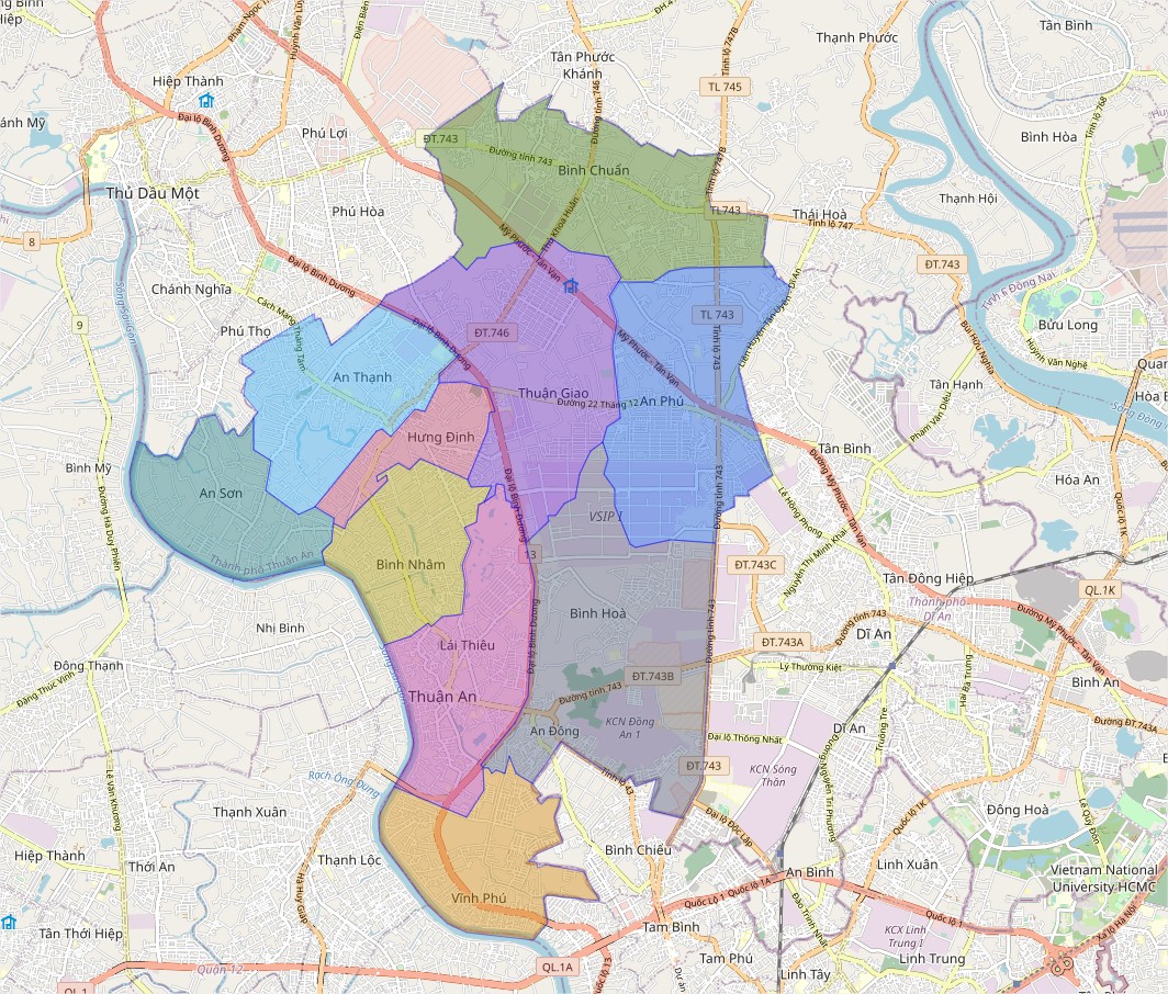 Lũy kế đến nay, Bình Dương đứng thứ 3 cả nước về thu hút vốn đầu tư nước ngoài, chỉ sau TP.HCM và Hà Nội với 3.974 dự án,tổng số vốn đăng ký đầu tư đạt 36,5 tỷ USD, chiếm khoảng 9% tổng vốn đầu tư cả nước. Trong đó, Thuận An được định hướng phát triển công nghiệp nhẹ.