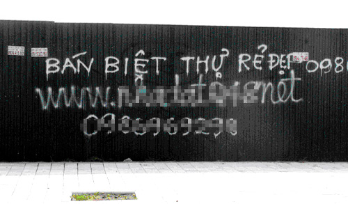 Ngoài ra, nhiều doanh nghiệp bất động sản còn chọn cách tiếp cận thị trường bằng những quảng cáo rao vặt dán chi chít ngoài vỉa hè, gốc cây, góc đường. Một dự án chung cư ở Hà Đông đang chuẩn bị chào bán, chỉ qua một đêm, hàng loạt băng rôn quảng cáo dự án đã được treo la liệt khắp các gốc cây vỉa hè.