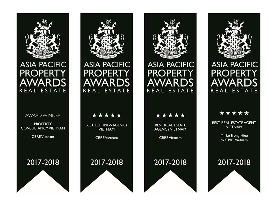 Giải thưởng Bất động sản châu Á – Thái Bình Dương là một phần của Giải thưởng Bất động sản Quốc tế danh giá và uy tín bậc nhất trên thế giới nhằm vinh danh các công ty có chất lượng dịch vụ cao nhất tại tất cả các lĩnh vực trong ngành bất động sản trên từng quốc gia. Năm nay, CBRE Việt Nam đã vượt qua các công ty đầu ngành trong nước để dành được các giải thưởng ‘5 sao’ danh giá trên và đồng thời được đề cử là đơn vị đại diện cho khu vực châu Á – Thái Bình Dương tham gia Giải thưởng Bất động sản Quốc tế cho hai hạng mục ‘Đơn vị cho thuê Bất động sản tốt nhất Châu Á – Thái Bình Dương’ và ‘Chuyên gia Bất động sản tốt nhất Châu Á – Thái Bình Dương’.