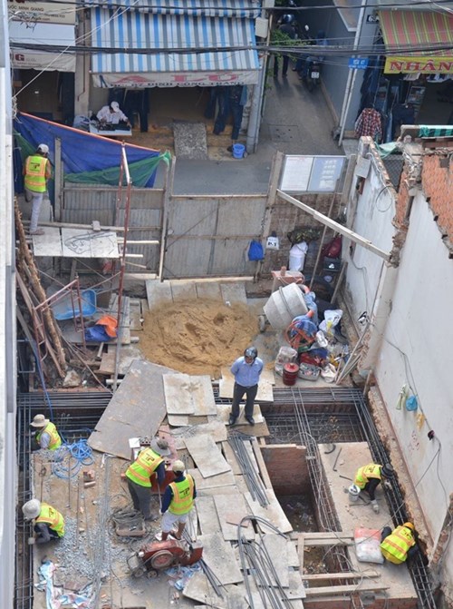 Sở Nhà đất khi đo vẽ khu đất để phân chia đã vẽ luôn phần đất làm đường cống thoát nước chung vào thửa đất này. Căn cứ vào bản vẽ, Phòng TN-MT Q.1 đã cấp sổ đỏ cho cả phần diện tích cống chung vào nhà số 62. Sau khi sang nhượng lại mảnh đất số 62, bà Hương xin giấy phép xây dựng và dựa vào sổ đỏ nên UBND Q.1 cấp giấy phép xây dựng cho bà Hương lên đường cống thoát nước chung. “Chúng tôi chẳng hay biết gì, chỉ đến khi bà Hương đào phần cống này lên xây nhà chúng tôi mới biết. Hiện đường cống đã bị đập bỏ để xây nhà nên các hộ dân tại đây không có đường thoát nước sinh hoạt, gây ô nhiễm môi trường. Hơn 5 tháng nay các hộ dân phải chạy đi nhiều nơi xin phép đấu nối và làm hệ thống thoát nước mới, bây giờ vẫn chưa xong”, ông Tùng bức xúc.