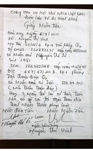 hồ sơ gốc, anh Tứ cảm thấy bất an nên yêu cầu bà Vinh ghi một giấy nợ