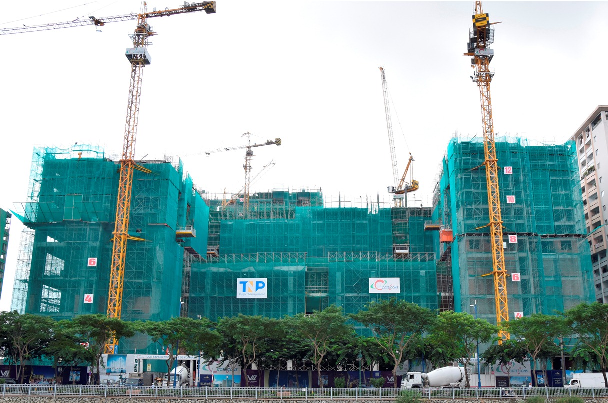Hình ảnh công trường The GoldView tại mặt tiền Bến Vân Đồn