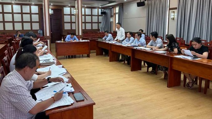 Tổ Công tác 1645 làm việc với các chủ đầu tư nhằm tháo gỡ vướng mắc cấp sổ hồng cho người mua. Ảnh: THANH HIỀN