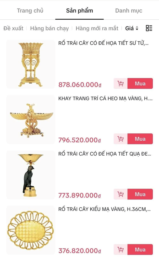 Những sản phẩm có giá hàng trăm triệu đồng được bày bán trên gian hàng của NTK Thái Công. Ảnh chụp màn hình