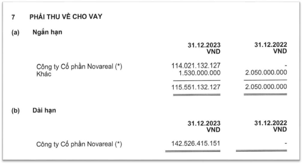 Tại thời điểm cuối quý 4/2023, Gỗ An Cường ghi nhận khoản phải thu về cho vay 257 tỷ đồng từ Công ty CP Novareal, gồm 114 tỷ đồng phải thu về ngắn hạn và 115,5 tỷ đồng thu về dài hạn. Đây là khoản tiền đặt cọc tại dự án Novaworld Phan Thiết.
