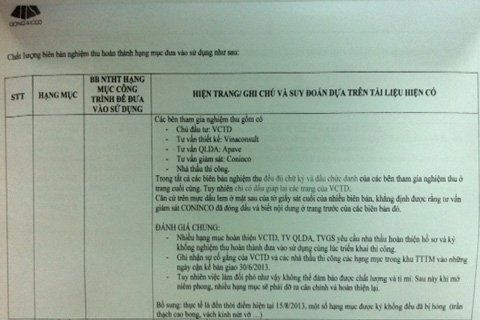 Chất lượng biên bản nghiệm thu hoàn thành hạng mục đưa vào sử dụng khiến VPCapital "tá hỏa"