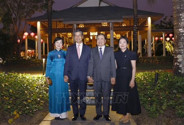 Chủ tịch Quốc hội Trần Thanh Mẫn và Phu nhân chụp ảnh chung với Đại sứ Nhật Bản tại Việt Nam Ito Naoki và Phu nhân - Ảnh: Doãn Tấn - TTXVN.