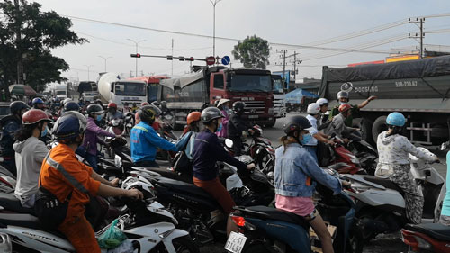 Ùn tắc đang diễn ra hằng ngày trên Quốc lộ 51, nhất là ở những điểm giao với đường ngang Ảnh: Bích Ngọc