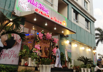 Nhà hàng tiệc cưới này được “hô biến” từ nhà sinh hoạt cộng đồng, lại gây khói bụi và ồn ào cho cư dân. Ảnh: MP