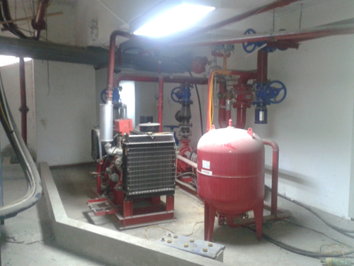 Hệ thống máy bơm nước tại tầng hầm chung cư.