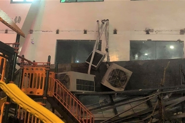 Hiện trường dàn điều hoà đổ sập xuống khu vui chơi của trẻ em