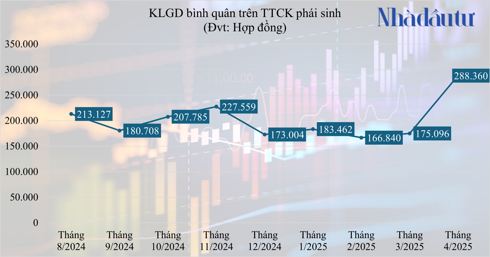 Thống kê của Nhadautu.vn cũng chỉ ra, khối lượng giao dịch bình quân của các hợp đồng phái sinh (tính đến phiên 15/4) là hơn 288.360 hợp đồng/phiên, cao hơn hẳn xét từ giai đoạn tháng 10/2024 trở lại đây. Điều này phần nào minh chứng dòng tiền của nhà đầu tư đã chuyển dịch sang thị trường này.