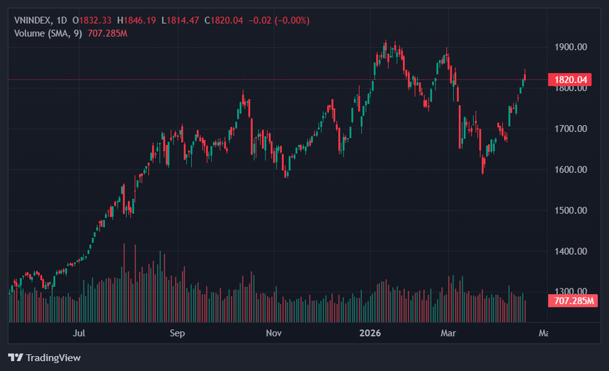 SSI cho rằng vùng kháng cự của VN-Index hiện nằm trong khoảng 1.840-1.880 điểm, trong khi vùng hỗ trợ gần được xác định quanh 1.780-1.800 điểm.
