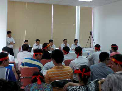 Ngay tại cửa phòng họp là một đội bảo vệ và nhóm nhân viên “kiểm tra tư cách khách hàng”. Phía chủ đầu tư chỉ đồng ý gặp số người đã nhận được giấy mời. Ban Đại diện khách hàng đề nghị tất cả khách hàng có mặt được gặp nhưng phía Nam Cường không đồng ý vì hội trường chật hẹp và đã có kế hoạch, chủ trương làm việc với những khách hàng được mời.