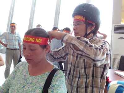 Chuẩn bị băng rôn để ra trước cửa Tập đoàn phản đối.