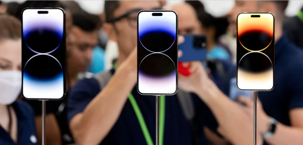 Bức ảnh này được chụp vào ngày 7/9/2022 về mẫu iPhone 14 Pro và 14 Pro Max được trưng bày tại một sự kiện của Apple ở Cupertino, California. Ảnh: AFP