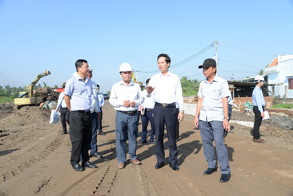 Khảo sát hiện trường thi công các dự án xây dựng tuyến ĐT.857, nâng cấp Quốc lộ 30 đoạn Cao Lãnh - Hồng Ngự (giai đoạn 3) và bến phà An Phong - Tân Bình, Chủ tịch UBND tỉnh Đồng Tháp yêu cầu các nhà thầu tiếp tục đẩy nhanh tiến độ thi công, đảm bảo hoàn thành đúng kế hoạch.