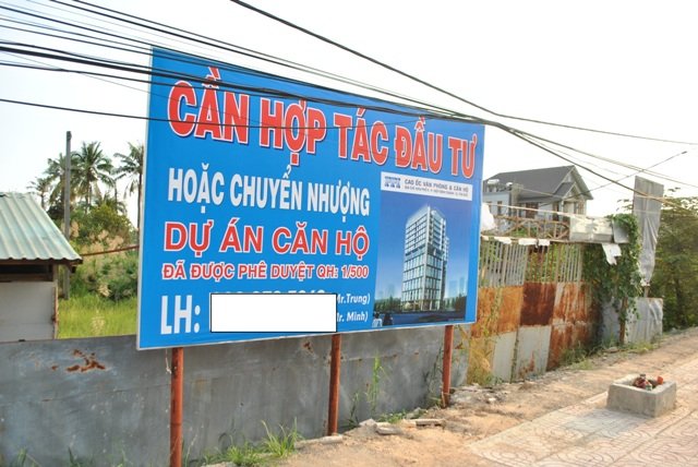 Bảng thông báo cần tìm đối tác hợp tác đầu tư hoặc chuyển nhượng dự án trên đường Phạm Văn Đồng, quận Thủ Đức, TPHCM. Ảnh: Mạnh Tùng