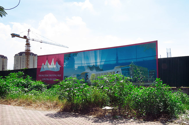 Những cột sắt lởm chởm, đen sì, nhọn hoắt mọc san sát trong bờ rào, nhìn xa giống như bãi chông khổng lồ trải dài trên mảnh đất vàng mặt tiền đường Lạc Long Quân (quận Tây Hồ, TP.Hà Nội). Đó là những gì mà Dự án Ciputra Hanoi Mall để lại sau 3 năm triển khai.