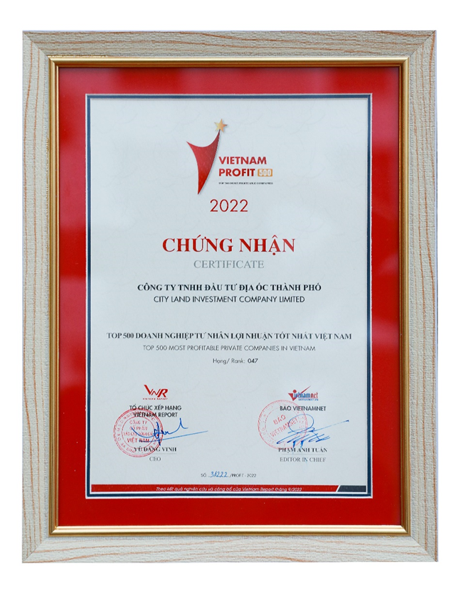 Việc có mặt trong bảng xếp hạng Top 50 Doanh nghiệp lợi nhuận tốt nhất Việt Nam năm 2022 đã chứng minh sự phát triển mạnh mẽ và bản lĩnh của CityLand trước khó khăn, thách thức, đồng thời khẳng định vị thế hàng đầu của thương hiệu CityLand trên thị trường bất động sản Việt Nam.