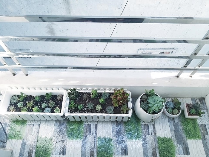 Ban công được cô tận dụng để trồng những loại cây yêu thích.