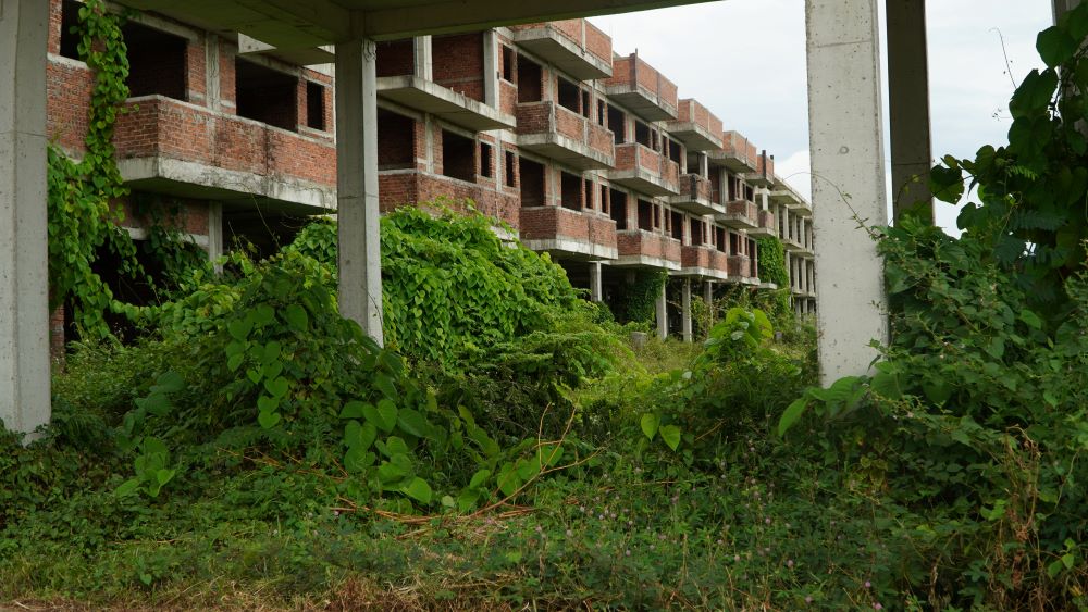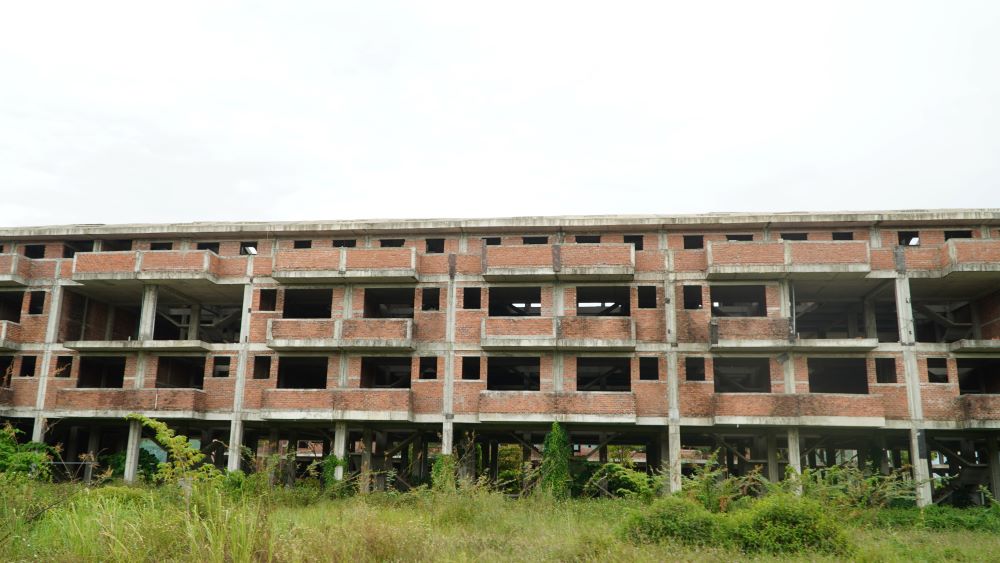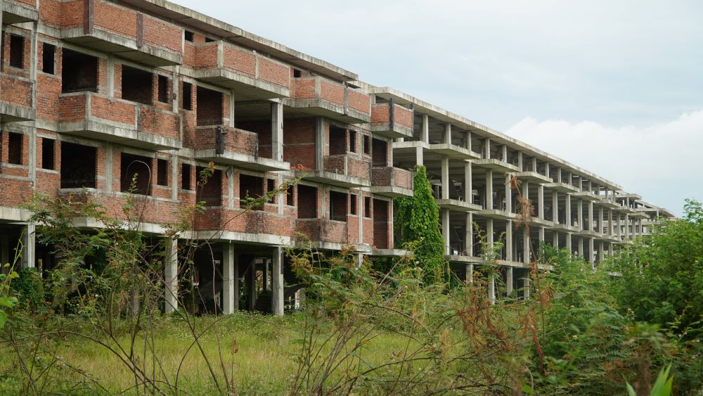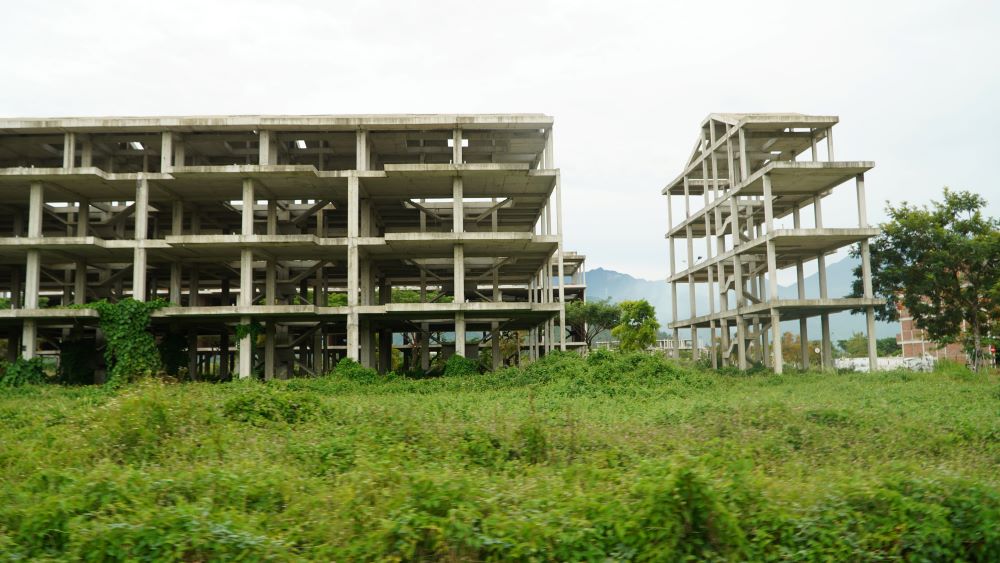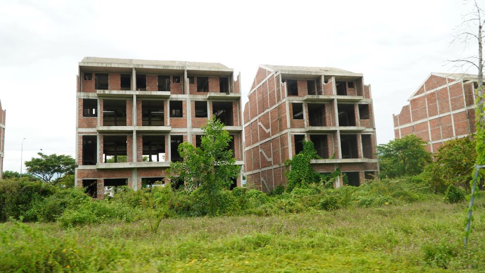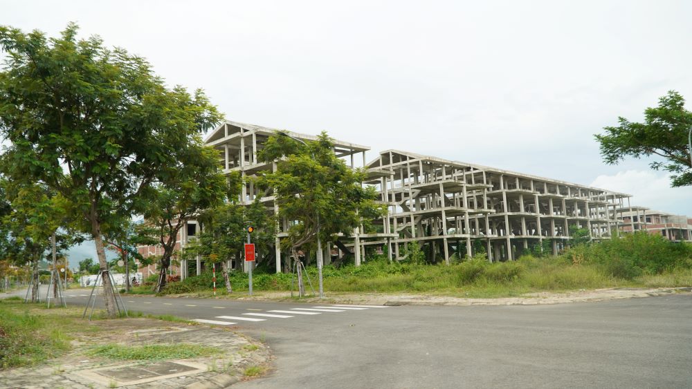 Rất nhiều dãy nhà phố, biệt thự tại Golden Hills xây dựng xong phần thô thì bỏ hoang, cỏ dại mọc um tùm