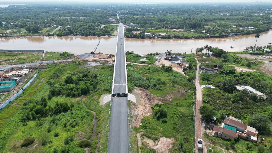 Sau 6 năm thi công, dự án cầu Long Đại bắc qua sông Tắc nối phường Long Bình và Long Phước (TP. Thủ Đức) đang “chạy đua” để thông xe vào tháng 12 tới đây. Khi có cầu, người dân hai bên bờ chỉ mất khoảng 500m để di chuyển qua lại thay vì phải chạy đường vòng mất 10km như hiện nay.