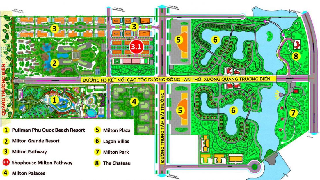Sau khi hoàn thành khu nghỉ dưỡng 5 sao Pullman Phú Quốc, chủ đầu tư tiếp tục phát triển phân khúc sản phẩm nhà phố thương mại Milton Pathway vào đầu năm 2020.