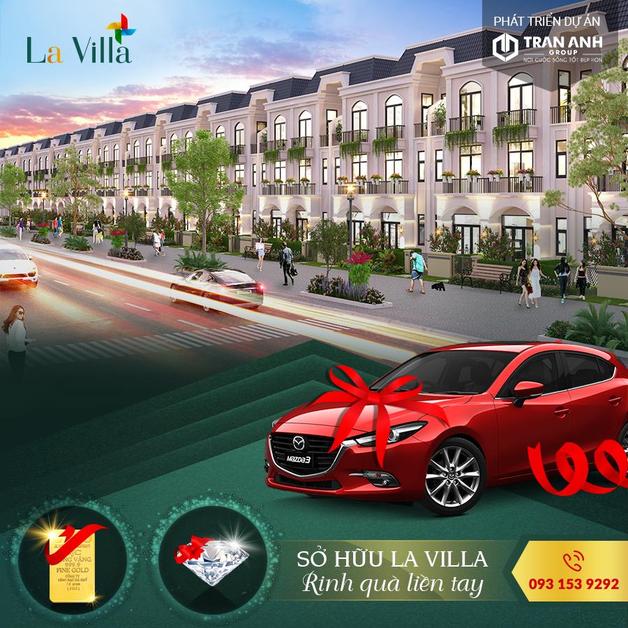 Theo thông tin từ đơn vị phát triển dự án Tran Anh Group, khi sở hữu nhà phố tại dự án La Villa Green City khách hàng sẽ có cơ hội nhận những giải thưởng hấp dẫn với giá trị vô cùng lớn ngoài xe Mazda 3 2019 còn có xe Honda SH Mode thời trang; xe Air Blade tiêu chuẩn; ti vi Samsung 40 inch; tủ lạnh 208 lít...