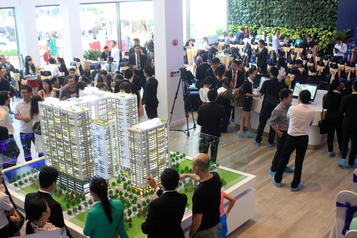 Khách hàng tham quan sa bàn một dự án tại Tp.HCM.