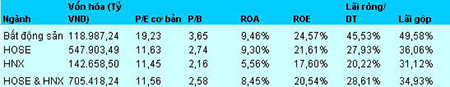 chỉ số về hiệu quả quản lý của nhóm CP BĐS đều cao hơn so với thị