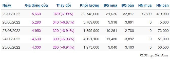 Các cổ phiếu FLC của Tập đoàn FLC, ROS của Xây dựng FLC Faros đã tăng kịch biên độ trong 5 phiên liên tục từ 22/6 đến 27/6. Đến phiên 29/6, mã FLC tiếp tục tăng hết biên độ, đánh dấu phiên thứ 6 tăng tím trần liên tục. Sau hàng loạt phiên lao dốc sàn trắng bên mua, đà tăng mạnh của nhóm họ F.