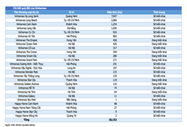 Chi tiết quỹ đất của Vinhomes