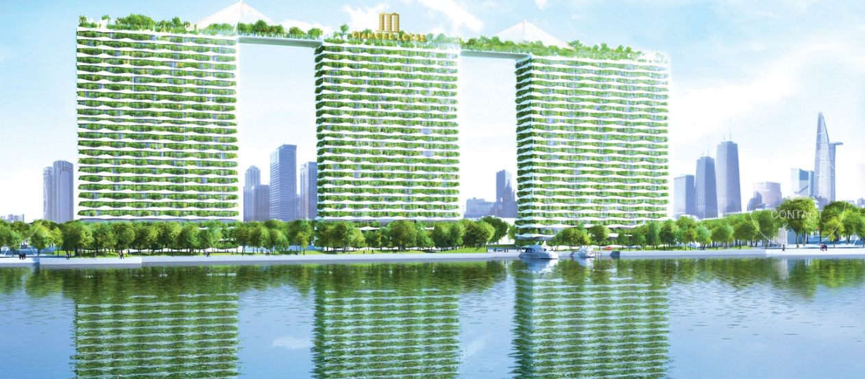 Về lâu dài, đây sẽ là giải pháp góp phần bảo vệ môi trường, tiết kiệm chi phí, đảm bảo sức khỏe và chất lượng cuộc sống của cư dân. Dự án được phủ xanh trên mặt bằng lẫn diện đứng sẽ góp phần biến Diamond Lotus thành một biểu tượng xanh. Ngoài ra, với thiết kế hiện đại Diamond Lotus là dự án bất động sản đầu tiên tại Việt Nam khi trên đỉnh kết nối 3 tòa nhà với nhau thành một vườn thiền trên không Sky Park có diện tích 5.000 m2. Điểm nhấn này, cộng với xây dựng theo tiêu chuẩn xanh của Mỹ, mật độ xây dựng thấp, vị trí bốn bề sông nước đã biến tòa nhà không chỉ là nơi để ở mà thành một khách sạn 5 sao trong lòng Sài Gòn.