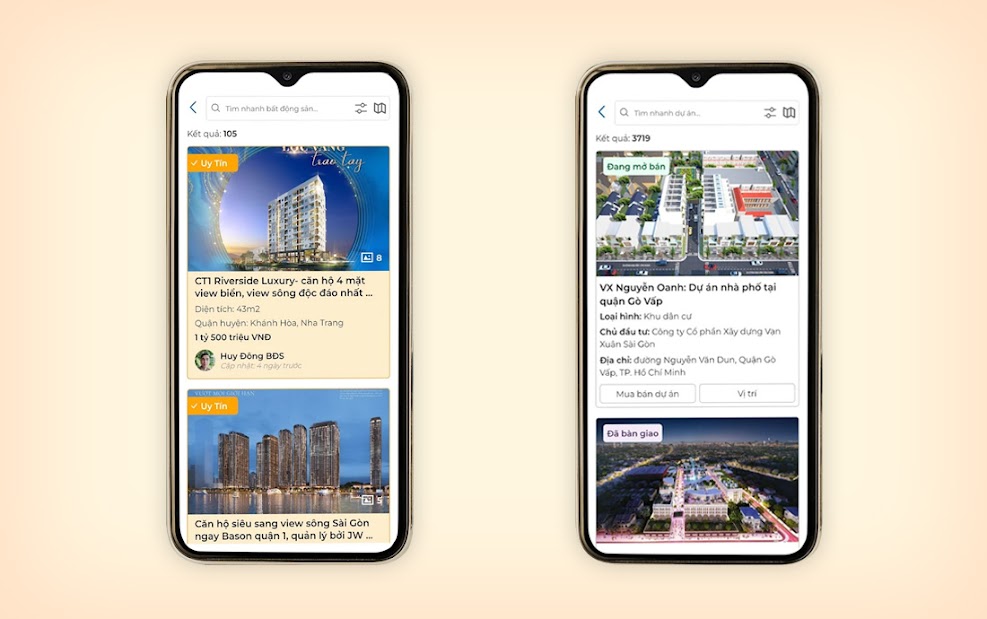 Thấu hiểu việc tìm kiếm thông tin là điểm chạm đầu tiên của người dùng trước khi cần đến những mắc xích khác để giao dịch bất động sản, nền tảng có nguồn dữ liệu lớn với hơn 2.000 dự án đang được giao dịch và hơn 100.000 tài sản kiểm duyệt chặt chẽ đang được rao bán/cho thuê hàng ngày.