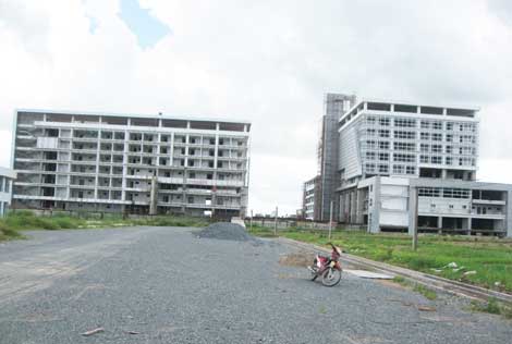 Sau gần 5 năm triển khai, các hạng mục xây dựng đều chỉ thi công ở dạng nửa vời. Thậm chí, một số hạng mục dự kiến hoàn thành ngày 10/6/2012 vẫn trong tình trạng... ngổn ngang. Cả một khu vực công trường rộng lớn nhưng không khí vắng vẻ, tĩnh mịch.