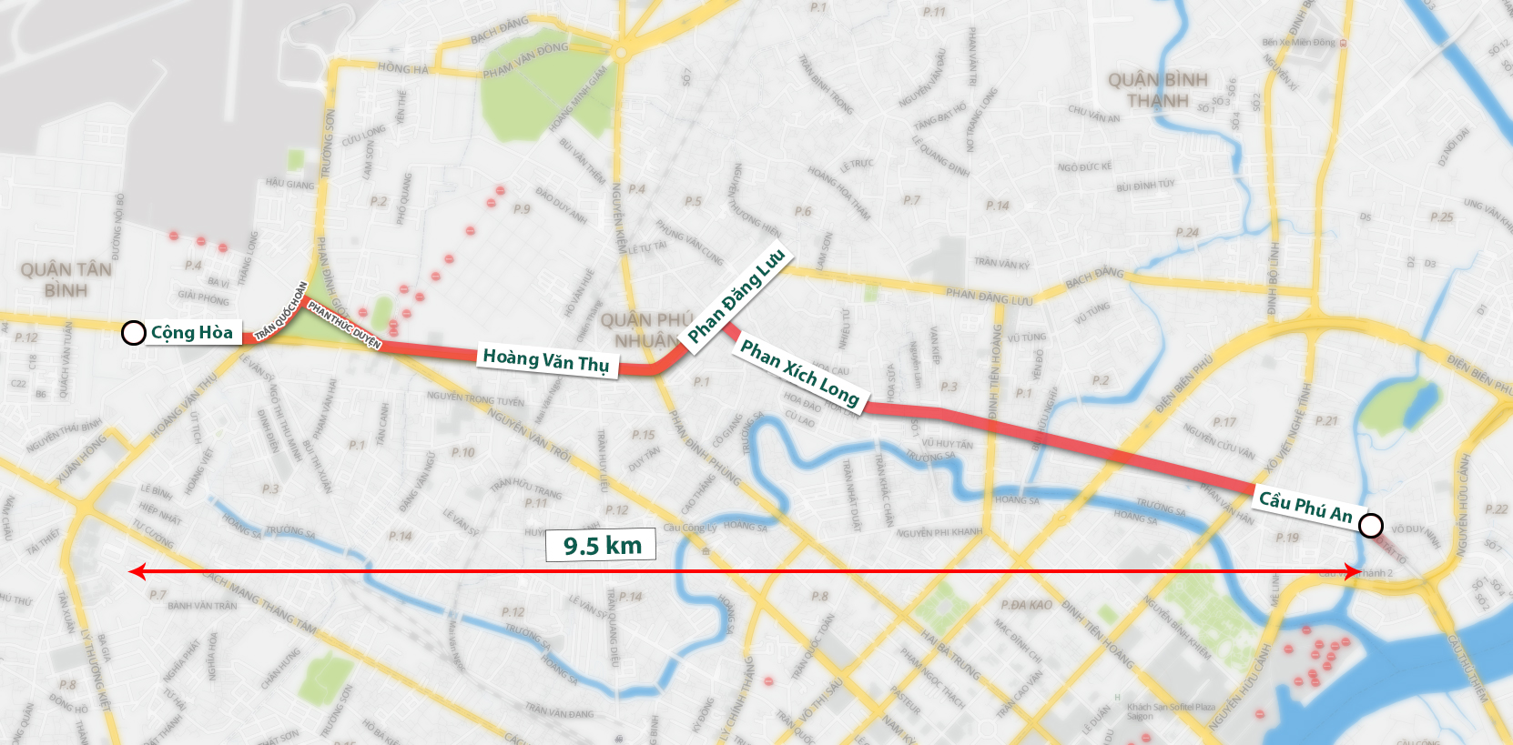 Tuyến đường bộ trên cao sẽ đi qua 3 quận gồm quận Tân Bình, Phú Nhuận và Bình Thạnh. Tuyến đi bộ trên cao số 1 có lộ trình bắt đầu từ nút giao Cộng Hòa theo đường Cộng Hòa - Trần Quốc Hoàn - Phan Thúc Duyện - Hoàng Văn Thụ - Phan Đăng Lưu - Phan Xích Long - Phan Xích Long (nối dài).