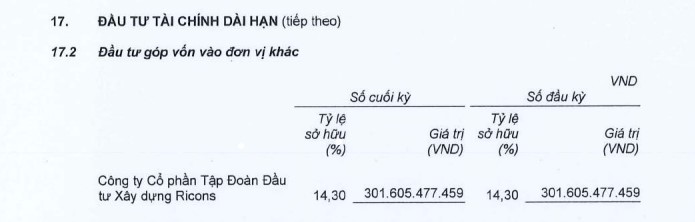 Thời điểm hiện tại cả Coteccons và Ricons đều chưa công bố báo cáo tài chính quý 2/2023. Song theo báo cáo tài chính quý 1/2023, Coteccons đang sở hữu 14,3% vốn tại Ricons.