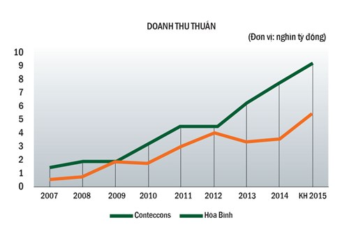 Công ty CP Xây dựng và Kinh doanh Địa ốc Hòa Bình (HBC) xác định, năm 2015 là năm mở đầu cho chặng đường mới 2015 - 2024, nhằm đủ sức thay thế các nhà thầu ngoại trong những dự án siêu cao và hướng đến mục tiêu doanh thu 45.000 tỷ đồng.