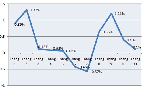 Diễn biến CPI tại Tp.HCM qua các tháng - Nguồn: Cục Thống kê Tp.HCM.