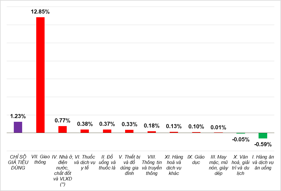 (vii) Chỉ số giá nhóm giao thông tăng 1,07%, làm CPI chung tăng 0,11 điểm phần trăm.