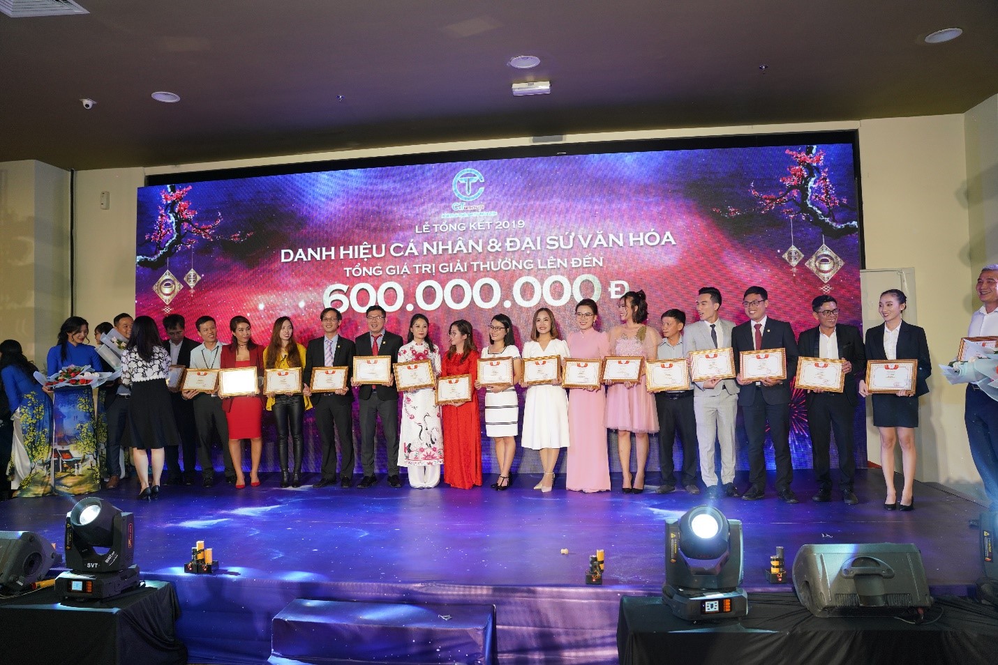Trong Lễ tổng kết , những tập thể và cá nhân đạt thành tích Xuất sắc, Tiên tiến của C.T Group đều sở hữu mức thưởng cực cao hiếm thấy trên thị trường. Nổi bật nhất là giải Cá nhân và Tập thể xuất sắc tại Tập đoàn nhận được phần thưởng “khủng” là xe hơi BMW, cùng hơn hàng trăm triệu đồng tiền mặt, phiếu an sinh và voucher mua sắm tại siêu thị cao cấp Bon Grocer.