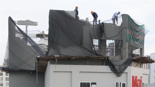Giám đốc một công ty xây dựng đang tháo dỡ nhiều công trình xây dựng sai phép tại Q.1 cho hay các công trình ngưng thi công không phải do đơn vị tháo dỡ mà do các chủ đầu tư yêu cầu ngưng tháo dỡ hoặc thi công chậm lại, chờ làm đơn xin UBND Q.1 cho tồn tại phần diện tích sai phép. Theo ông, có công trình đã tháo dỡ xong phần trần nhà nhưng xin giữ lại bức tường xung quanh để... che nắng.