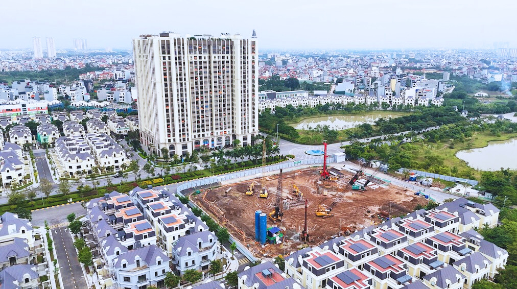 Ở phần dự án đang triển khai, một số căn biệt thự và shophouse vẫn trong giai đoạn xây thô, hoàn thiện.
