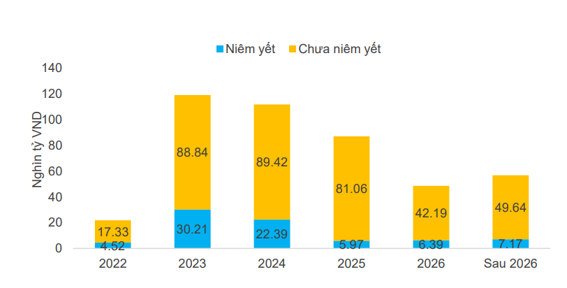 FiinRating kỳ vọng các biện pháp tái cấu trúc nợ sẽ được thực hiện trong thời gian sớm, nhất là các trái phiếu nếu được phân phối thứ cấp đến các nhà đầu tư cá nhân. Bên cạnh đó, áp lực vẫn duy trì ở mức đáng kể từ năm 2023 với 119,05 nghìn tỷ đồng và năm 2024 với 111,81 nghìn tỷ đồng.