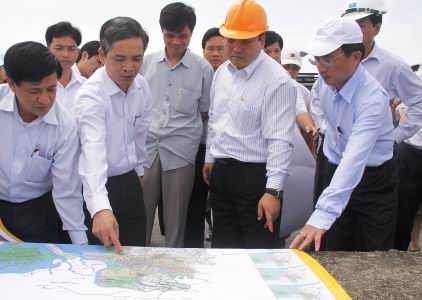 Phó Thủ tướng Hoàng Trung Hải thị sát địa điểm dự kiến xây dựng sân bay Tiên Lãng, Hải Phòng, tháng 5/2010. Ảnh: Chinhphu.vn |