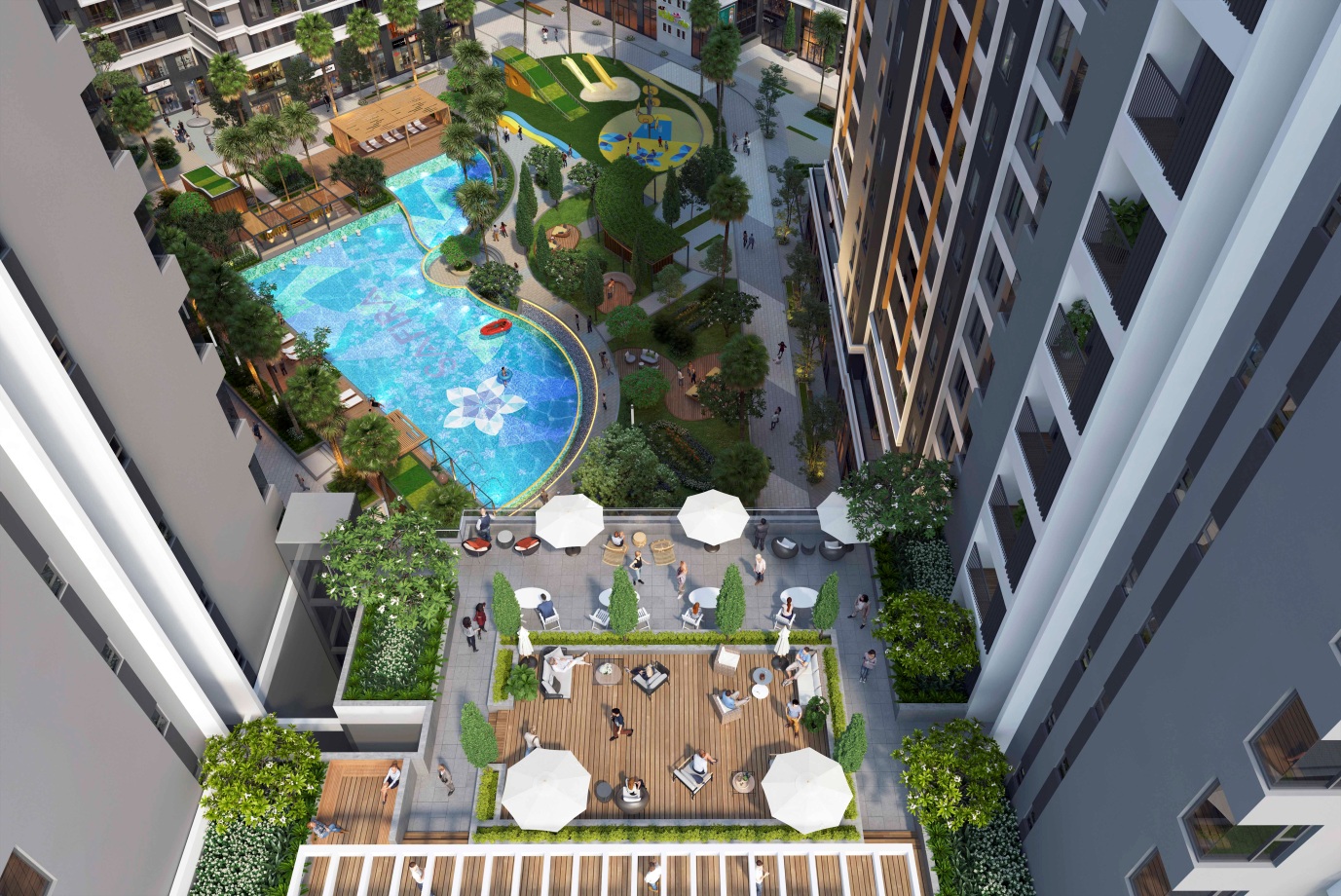 Ngay cạnh khu hồ bơi là không gian thoáng đãng cho những bữa tiệc BBQ ấm cúng, gắn kết tình thân. Đặc biệt, các cư dân có thể giao lưu tập luyện tại CLB yoga ngoài trời, mua sắm và thưởng thức ẩm thực tại chuỗi căn TMDV và siêu thị tiện lợi, hoặc hàn huyên tâm sự cùng bè bạn tại cà phê sân vườn lộng gió ở tầng 9 block A… Safira đa dạng loại hình căn hộ từ 1+1PN, 2 PN, 3PN, căn TMDV, duplex phù hợp với nhiều lựa chọn của khách hàng.