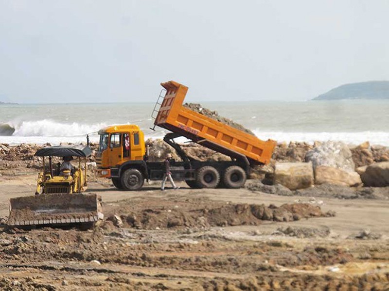 Đất đá của dự án Nha Trang Sao xâm hại vịnh Nha Trang. Ảnh: TẤN LỘC