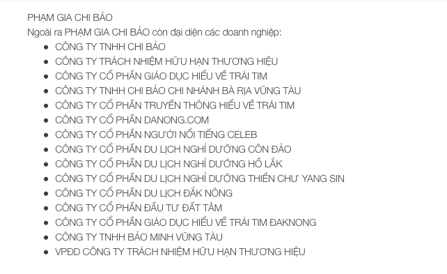 Chi Bảo còn đại diện cho hàng loạt doanh nghiệp trong nhiều lĩnh vực, trong đó có hơn một nửa trong lĩnh vực kinh doanh bất động sản với loại hình bất động sản du lịch.
